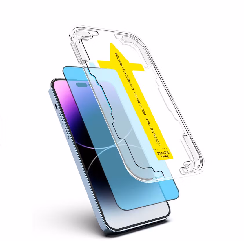 Konstruktionen i härdat glas gör att det blir enkelt att montera och sitter tätt mot skärmen för att förebygga att luftbubblor skapas.